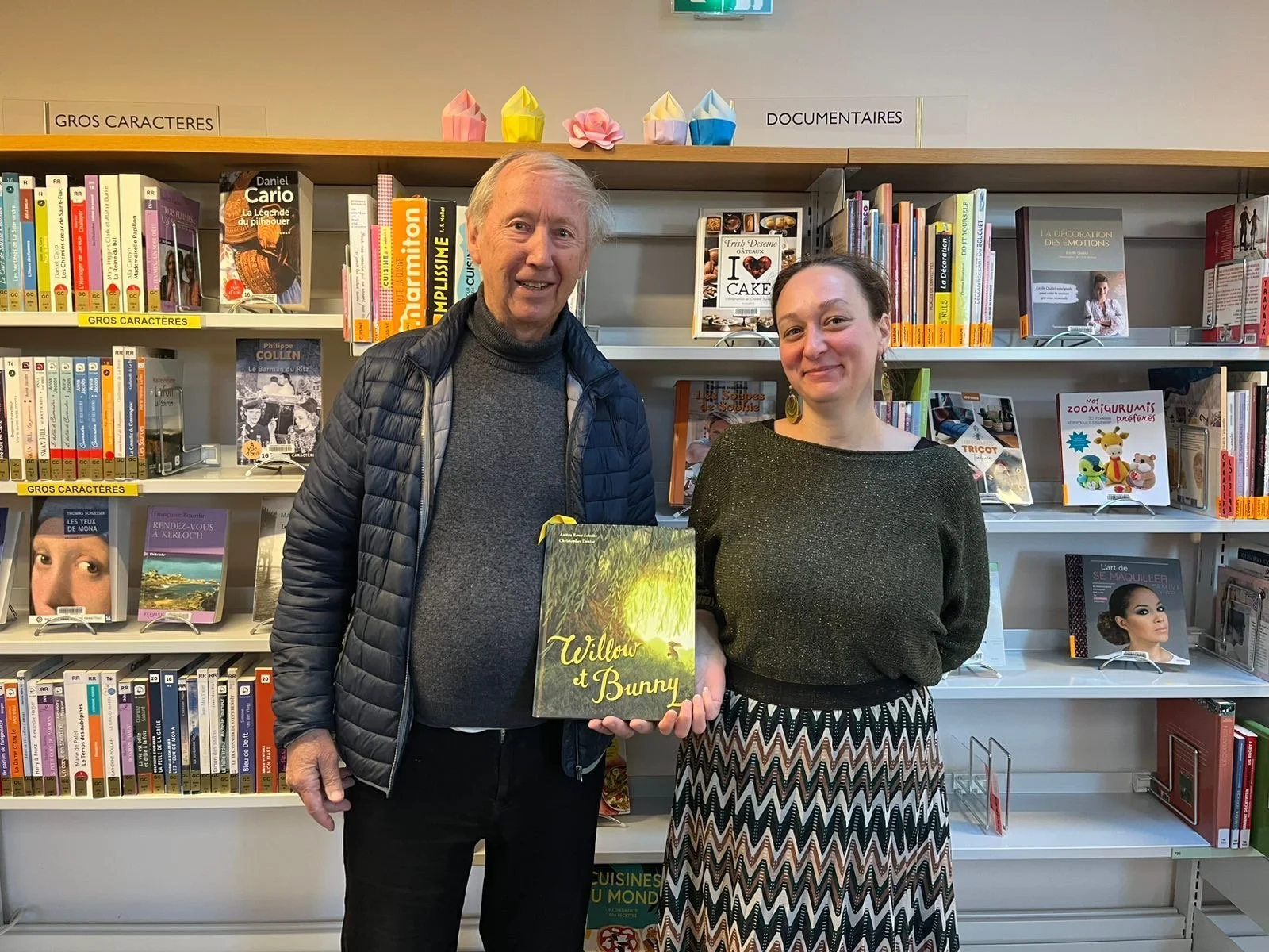 Willow et Bunny is now a part of the children’s book collection at the bibloteque in Croissy, France! Croissy-sur-Seine is a sister city of my town, Geneva, IL, and my lovely friend Chaz Baechler delivered it personally in her recent travels.