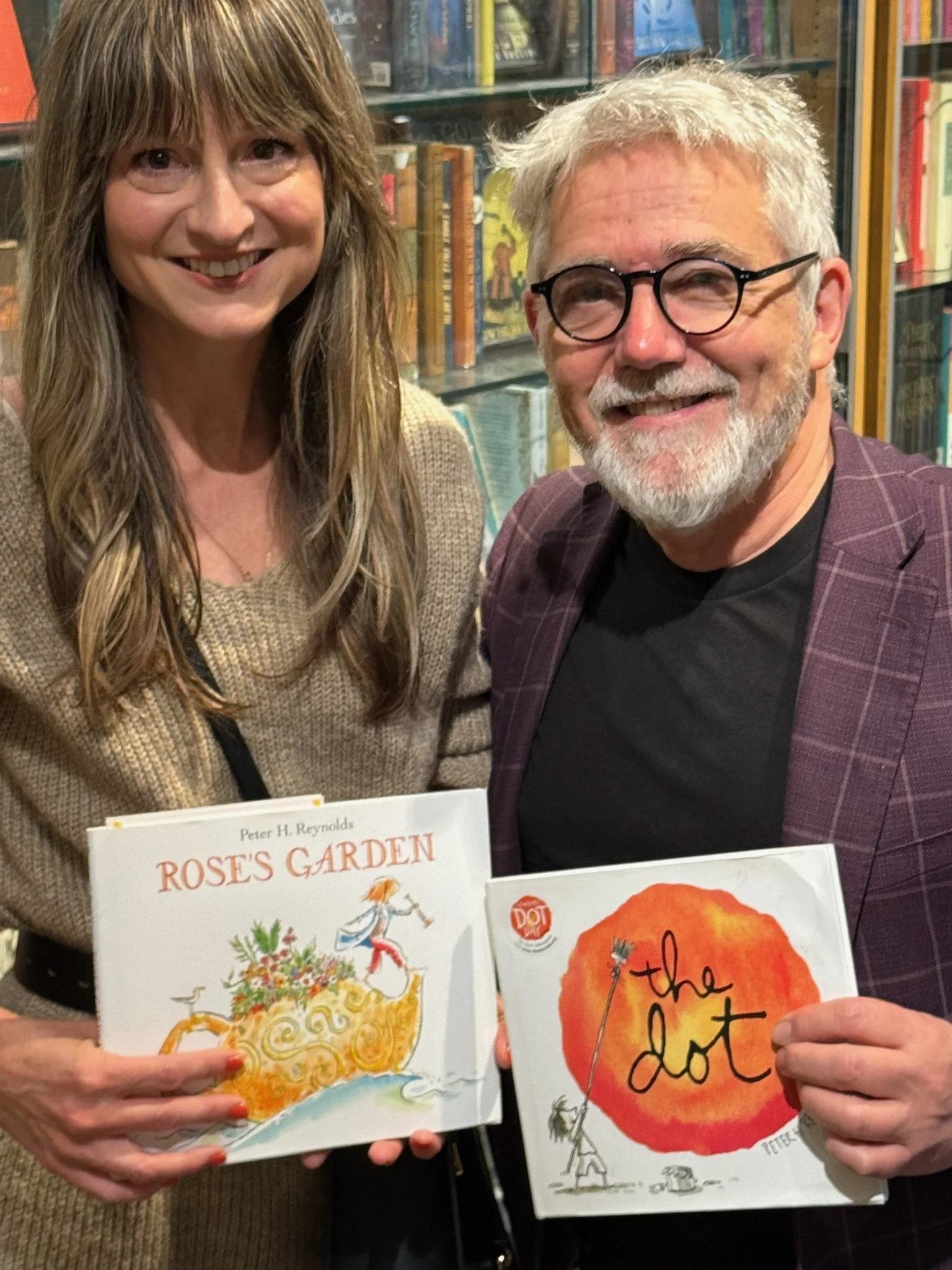 Who should happen to be signing books at that very time but the incomparable Peter H. Reynolds! Reynolds is the author and illustrator of many incredible books for kids, including one of my all-time favorites, Plant a Kiss, words by Amy Krouse Rosenthal, illustrations by Reynolds.