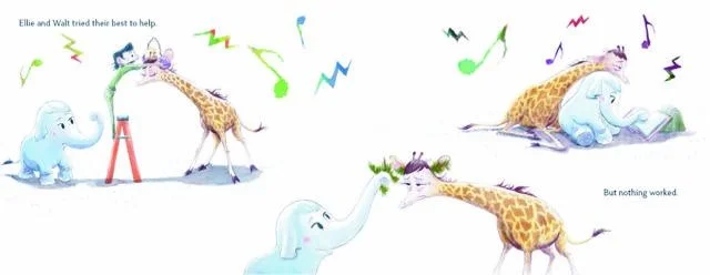 When Ellie hears Betty Bluebird singing a beautiful tune, it gives her a great idea. (I adore this spread, which uses a musical staff to seamlessly carry the reader from Betty's song to a close-up of our familiar friend's thoughtful eyes.)