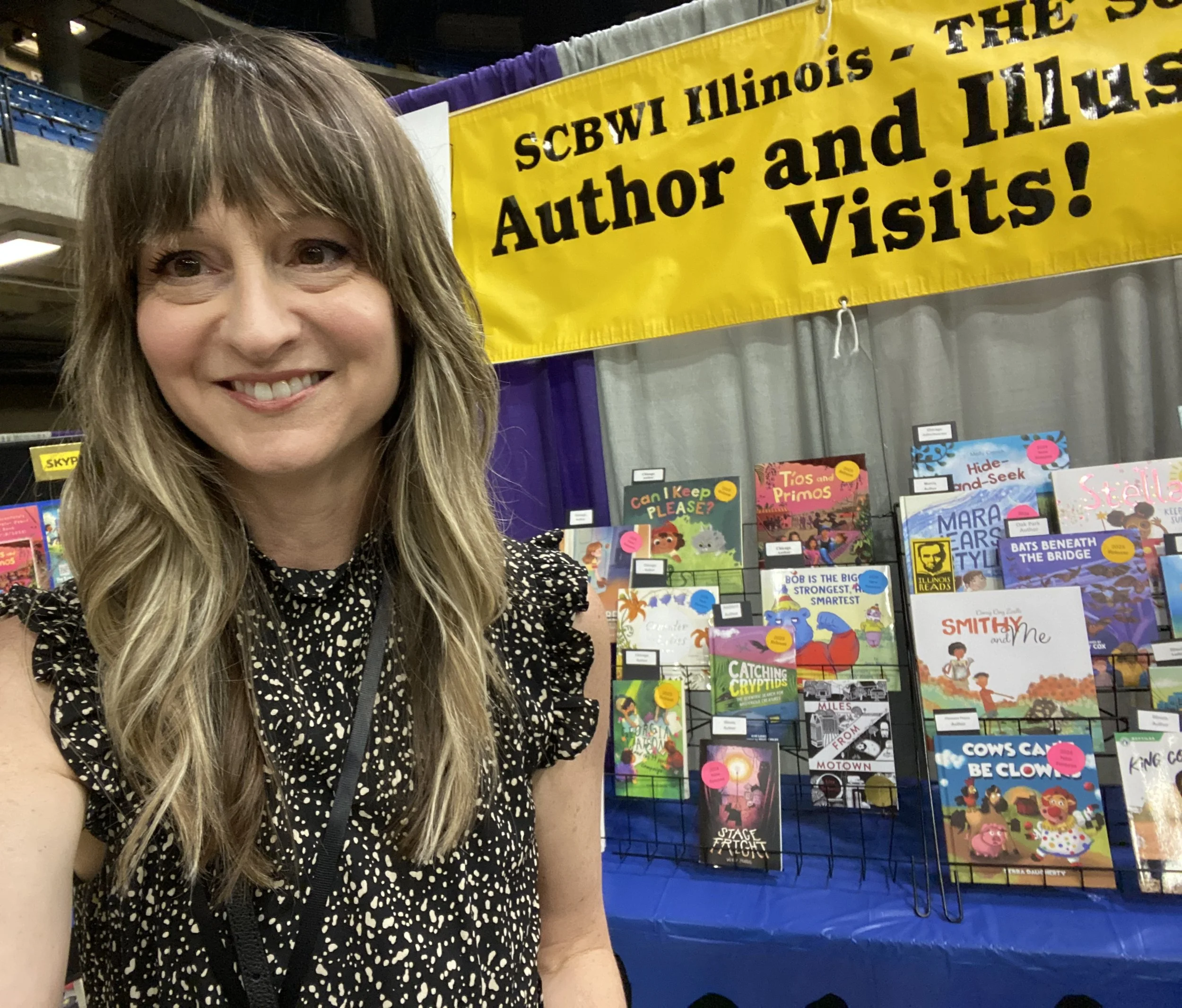In March, I attended the Illinois Reading Council’s annual conference in Springfield, IL. It’s a really wonderful event. My first stop on site? Working the SCBWI (Society of Children’s Book Writers and Illustrators) Illinois booth, to talk to educators about bringing in Illinois authors into their schools for school visits.