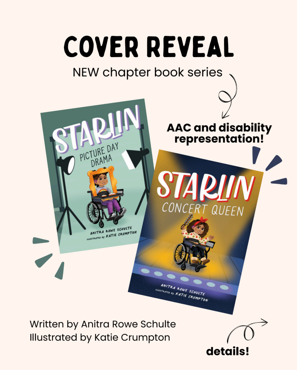 The covers were revealed on Instagram by Kaytlin Westbrook, a pediatric speech and language pathologist, who shares about AAC and children’s books at @kayts.communication.corner. Kayt’s posts are so joyful - she provides such fun and engaging ideas for supporting children in using AAC (augmentative and alternative communication). What a wonderful partner for spreading the good news about Starlin, a chapter book series with a main character who uses AAC!